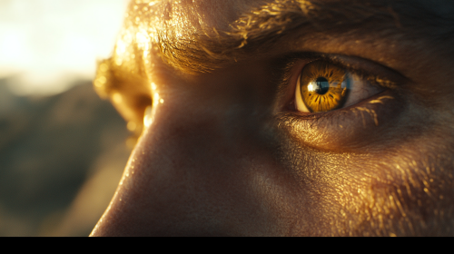 A weary traveler climbing a steep mountain path, with sweat glistening on their brow. In the background, a breathtaking sunrise is visible at the summit, representing the hard-earned reward of pursuing dreams through struggle and determination. --niji 6