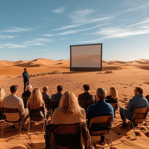 a selfie of an African American man, with his Lebanese wife, and 4 year daughter. The daughter has green eyes. The location is the desert of Dubai during the sunset. we can see the dunes in the background. The African American man is wearing glasses, and new school red baggy t shirt, and a white scarf covering his head, took from iPhone 16, in 2024 in the style of Alex Webb, candid::3 30mm lens, shot in 2024, candid, minimalism, moody, modern, cinematic realism, Eye Level Shot, shot with hasselblad 30mm, Kodak Ektar 100::1 --no black and white photography --ar 3:4 --style raw --stylize 0 --q 2