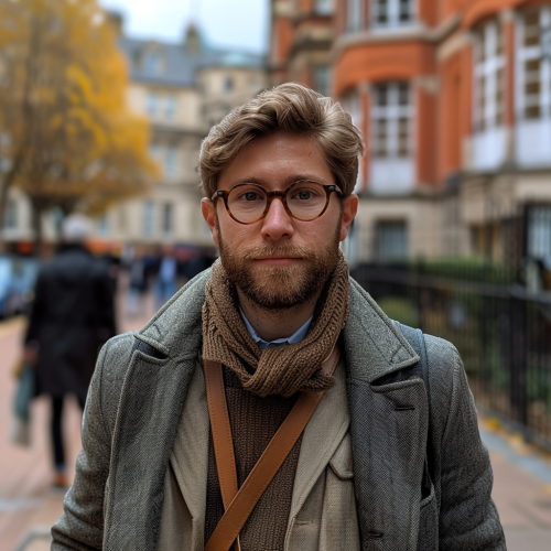 Doctor Riley Grant: Professor of Anthropology and Economics at the University of Florida. Dressed casually on a trip to London while at an academic confrence. --s 250 --v 6.0