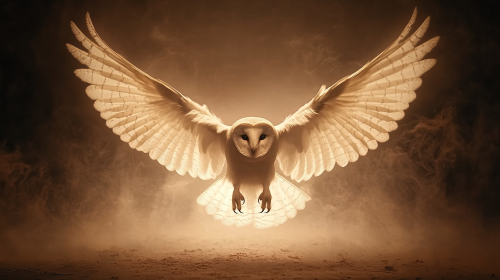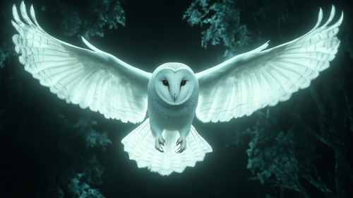 Owl - photography A barn owl flying silently through a dark forest, wings outstretched. , by Joel Sartore --ar 16:9 --personalize na8qdfo --stylize 750 --v 6.1