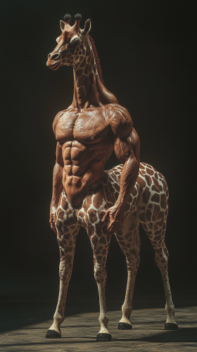 a centaur but the top half is a man’s torso an head and the bottom half is the legs of a giraffe, 8k, vivid, 8k ultra detailed, 8k ultra realistic, 8k cinematic, 8k hyper detailed, 8k hyper realistic, 8k photo realistic, 8k insanely detailed, 8k insanely realistic, intricate, high definition, --ar 9:16 --v 6.1
