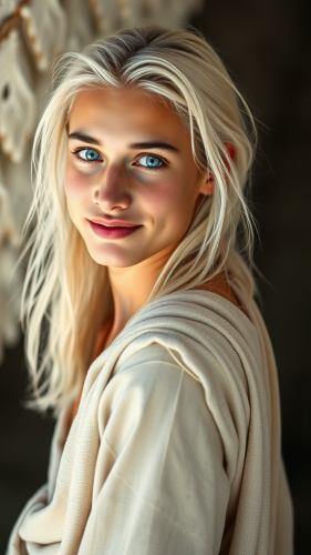 1980s style photography retro futuristic cinematic pastel tones photography 35mm kodak cinematic tones. albino girl, red mouth slightly open, sitting on a chair, holding a linen goose embroidered with colorful beads in her hands, dressed in a pastel pink coat embroidered with animals made of bullion. around her neck she wears a huge tulle collar. her hair is decorated with large pastel peonies. white wall with painted vintage circus strongman, cannon, circus tent, woman swallowing swords. --v 6.0