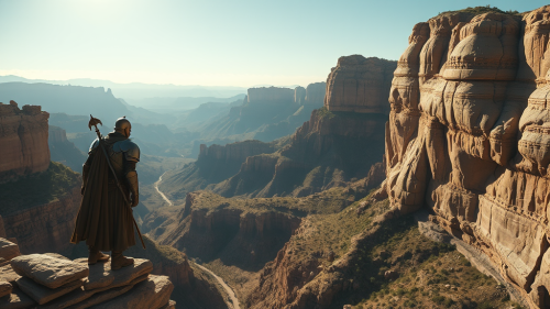 A Greek hoplite in a calm moment before battle, kneeling and praying to the gods, holding his helmet in one hand, ancient ruins around him, soft evening light. Hyper Realistic HD photos --v 6.1 --ar 16:9