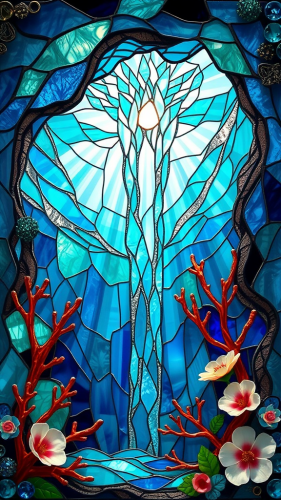 Explorebotticelli medieval gothic renaissance painting, game of thrones, daemon targaryen with midlength straight white hair wearing a black dragon scale tunic standing in front of a golden dragon breathing blue fire in a dark cave