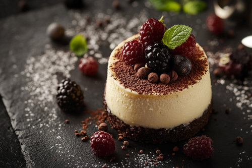 STYLE: Close-up Shot Top view | EMOTION: Tempting I SCENE: Ingredient Cheesecake | TAGS: High-end food photography, clean composition, dramatic lighting, luxurious, elegant, mouth-watering, indulgent, gourmet | CAMERA: Nikon Z7 | FOCAL LENGTH: 50mm | SHOT TYPE: Close-up | COMPOSITION: Top view Centered | LIGHTING: Soft directional light | PRODUCTION: Food Stylist --ar 3:2