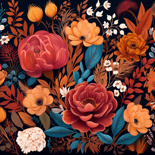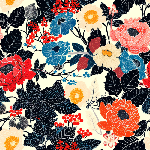 A multi-hued vibrant colorful floral pattern pattern in vector art style for shirt prints, vector art, digital art, shirt print