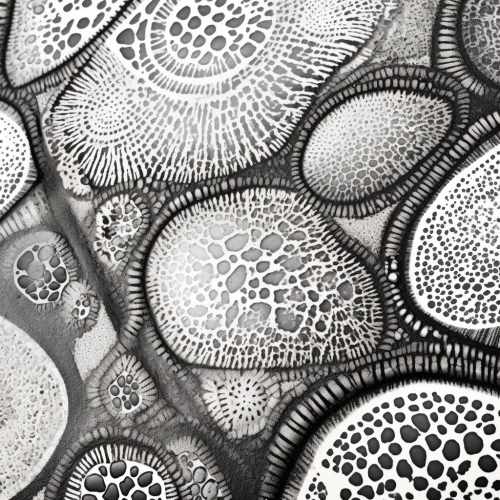 black and white graphic pattern with the imprints of mollusks in stone, close up, white background, low detail, Graphic design