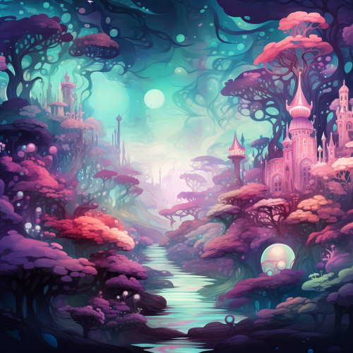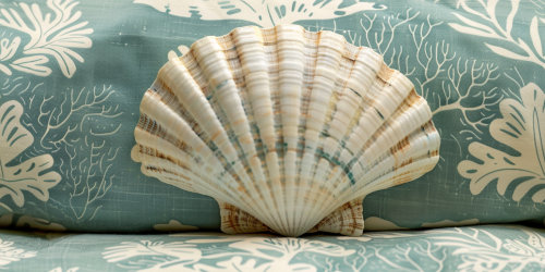Simple block print, shells and Seaweed, light cyan and white and lavender, side view --tile --stylize 250 --ar 2:1