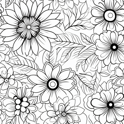 A coloring book page pattern in black and white with flowers, made in a naturalistic way, very simple, using medium-wide connected lines depicted on a completely white backdrop, incorporating many white areas that are easy to color for young children, creating an extremely simplistic and minimalistic continuous coloring book pattern design, created by a professional designer with a decade of work experience --tile --v 5.2