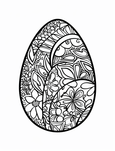An Easter egg Zentangle pattern card featuring an intricate design filled with spring motifs and patterns for coloring. In the style of minimalist style, coloring page. --ar 16:21
