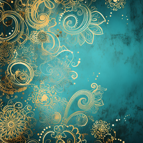 gold henna pattern on turquoise background, grunge scrapbook paper background