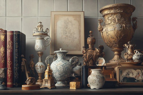 Photorealistic image of an assortment of rare art pieces and vintage artifacts, showcasing the intricate designs and unique characteristics of each item, capturing a sense of cultural and historical significance. Realistic photo, 8K resolution --ar 3:2 --v 6.1 --style raw
