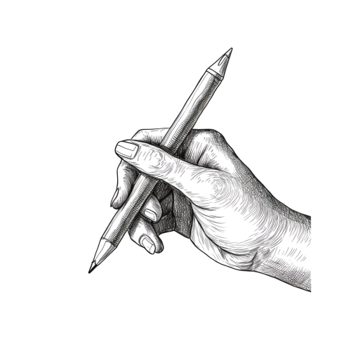 drawing of arm and hand drawing with a pencil. flat Illustration drawn in vintage engraving style. black and white. isolated. --no complexity --s 50 --v 5.0