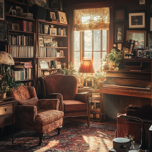 specific words (like cozy, warm lighting, and vintage decor) help shape the overall atmosphere, guiding Midjourney to create an image with a specific mood.