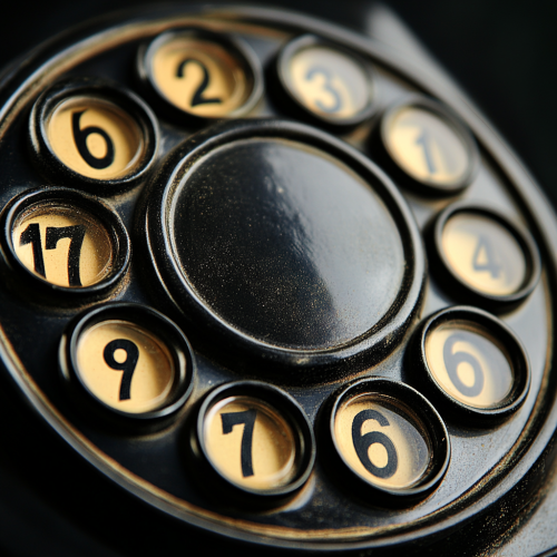 a black old fashioned telephone dial (with the numbers correctly in each hole from 0 to 9) on a black background. A soft light over the dial and photo realistic 16:9