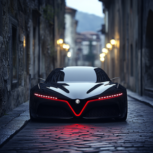 alfa romeo di nuova generazione dalle linee minimal e pulite simili a quelle di polestar. fari anteriori uniti assieme allo scudo. v 6.1 --s 750 --style raw