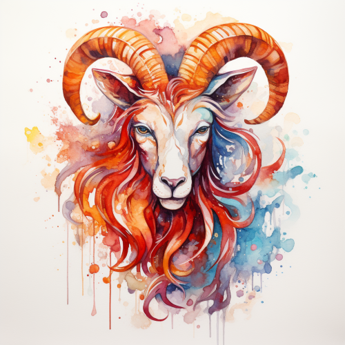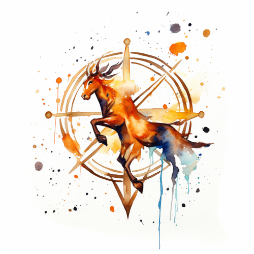 an abstract watercolor painting of the sign sagittarius on white background