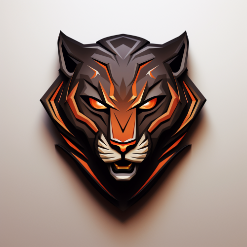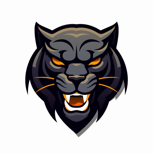 a shape in the form of a black panther animal in an nba logo unique shape, orange and white details --v 5.2