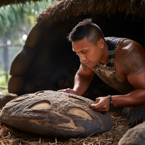 A close up of a hangi or Maori earth oven being opened to reveal the trays of food