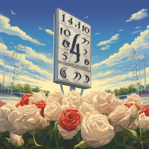 The match time indicator has the number four written on it and white roses around the edges, the stadium in the background,