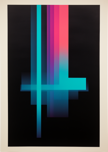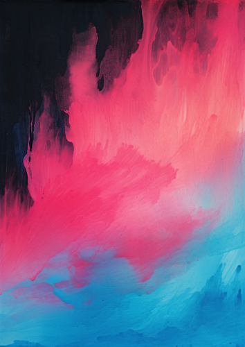 a scan of 1980s paper print of a blurry, dark, neon, and abstract color wash. The color palette is black, hot pink, green, and blue. gradients. --ar 5:7