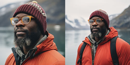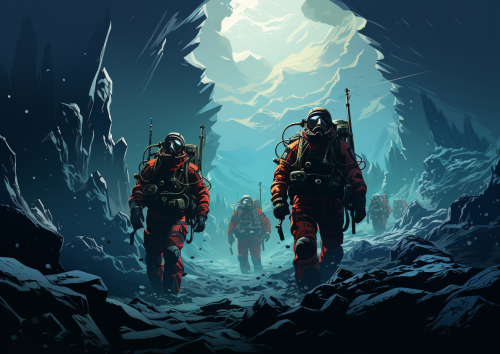 deep divers at the ocean surface ready to deep dive, ice berg background --ar 141:100 --s 750