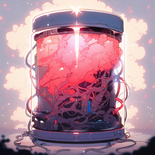 A brain floating in a high-tech jar, connected with wires --s 750 --niji 5