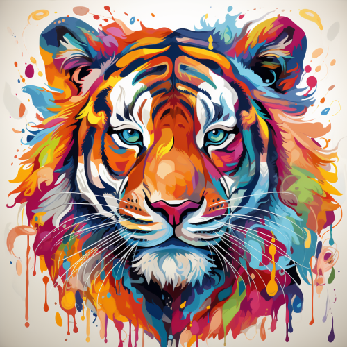 Line illustration of chinese zodiac sign of the Tiger, colourful and vibrant, painting for a living room. Slighly abstract. --s 250 --v 5.2