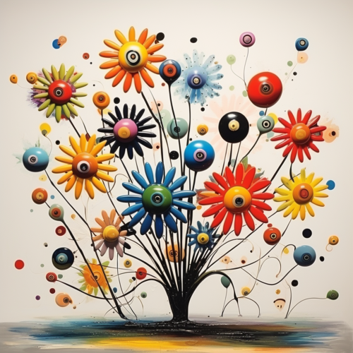 ****colourful zinnias imagined by Joan Miró, exquisite detail, photorealistic- - ar 16:9 --style raw --v 5.2