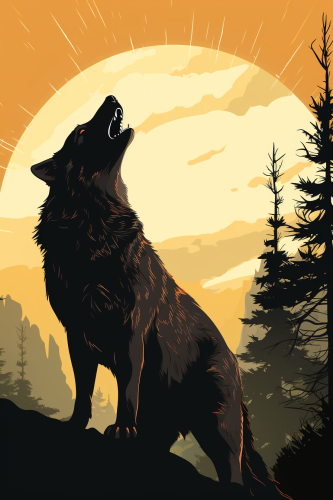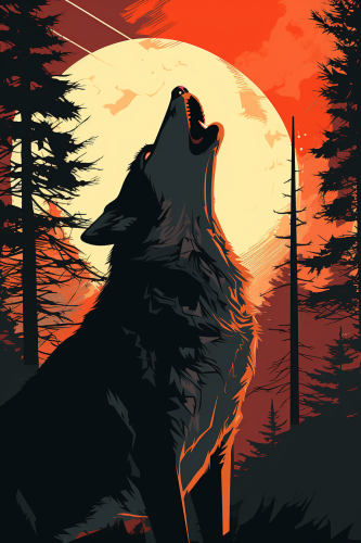 black and white, wolf howl silhoutte, flat vector --ar 24:36 --s 250