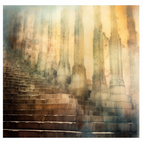 Sagrada Familia Steps, double exposure, rustic color, --no people --style J3Zl4UwwzzULYcc