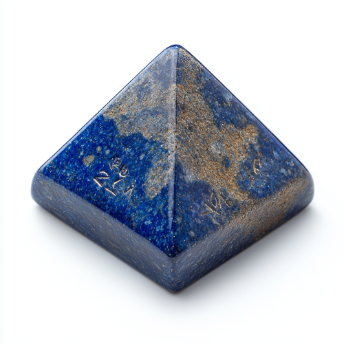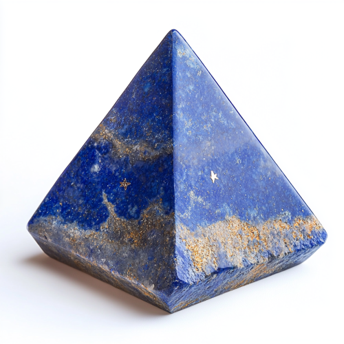 tetrahedron shaped dice made of lapis lazuli, geometrically accurate, no beveled edges, on white background, high resolution product photo shot --s 250