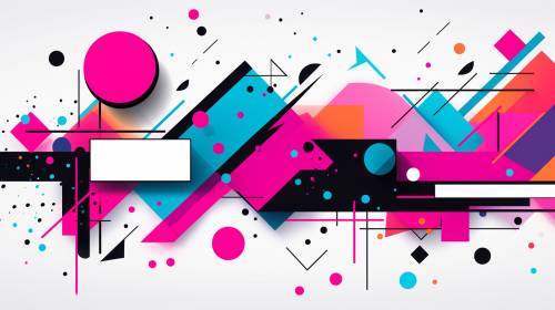 abstract 2D illustration, award winner stock image banner for copy space and website advertising, in the style of Corporate memphis, colors black white hot pink teal purple, UHD --ar 16:9