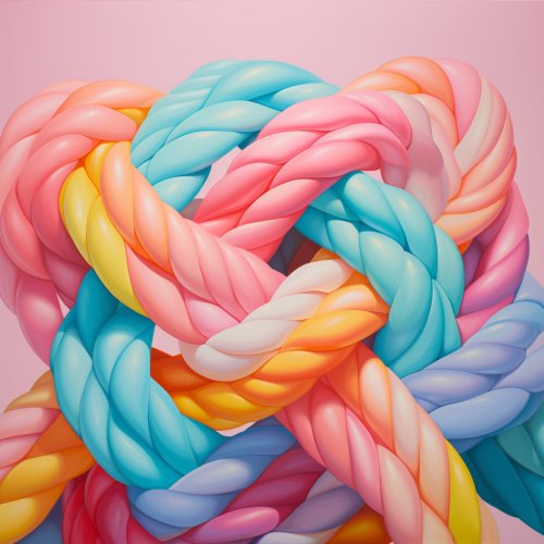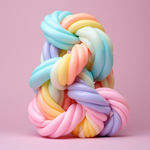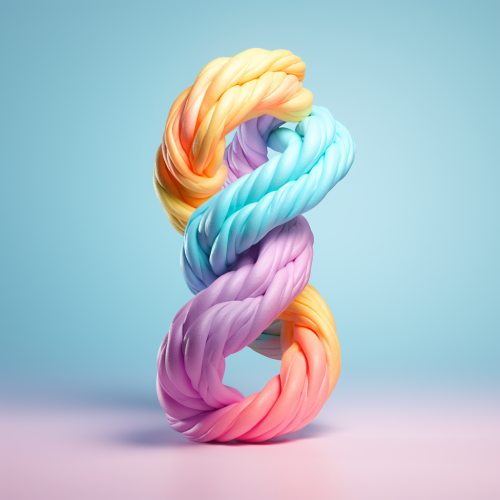 three individual strands twisted together from top of imagine to bottom of image, candy colors, pastel background