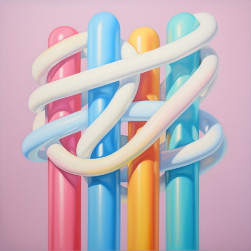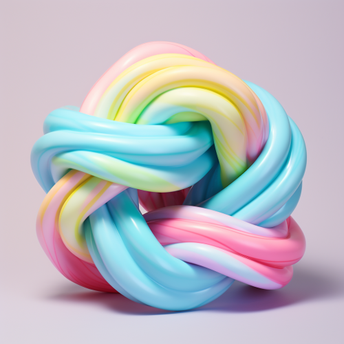 three tubes twisted together, candy colors, center top to center bottom, pastel background