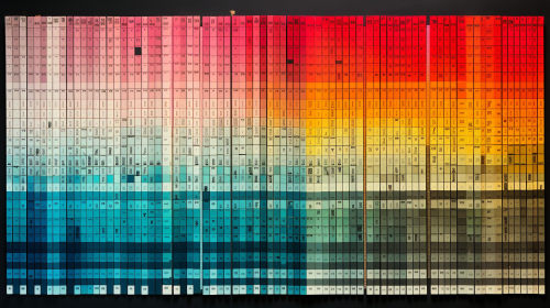 an abstract painting with lots of diagonal lines, orange and blue --ar 2:1