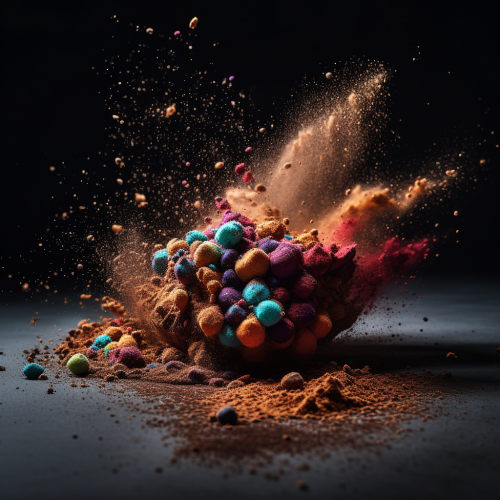 Commercial photography, powerful explosion of mix color dust, coffee bean, white lighting, studio light, high resolution photography, insanely detailed, fine details, isolated plain, stock photo, professional color grading, award winning photography, --v 5.0 --s 250