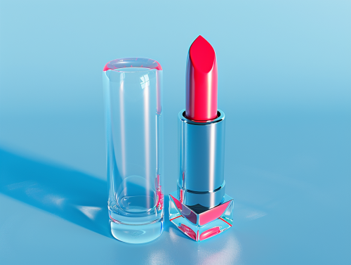 These lipstick, blush and mascara were taken from the front. These lipstick, blush and mascara are made of colorless glass on a light blue background. light sunny A bit of bright Disney style bright Pixar style --ar 4:3 --v 6.0