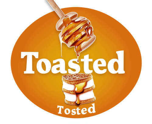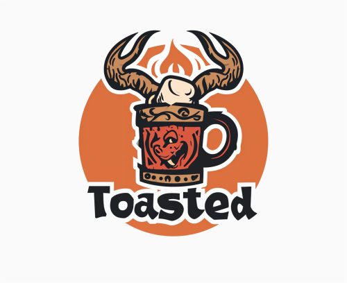 abstract round logo with the brand name "Toasted" of a Toasted Marshmallow over a viking mug of mead on a amber colored background --ar 17:14 --v 6.0