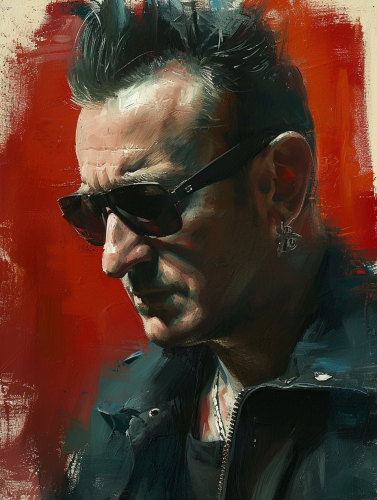 A poster portrait of bono, psychedelic, retro, by martin sharp and moebius --ar 3:4 --v 6.0
