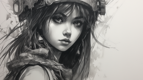 charcoal pencil sketch::2 , black and white, Dark cave, a digital mine, digital blocks, main character is alone, Our main character is a ball of fur with eyes. , cyber punk --ar 16:9