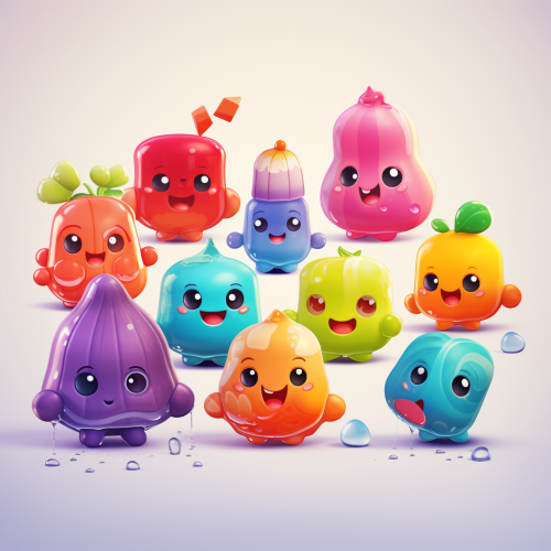 Create charming and whimsical jelly mascots to accompany each puzzle on our mobile game, similar to the delightful mascots in Candy Crush. Design small, colorful, and jelly-like characters that resonate with the theme of each puzzle. Ensure that these mascots are visually harmonious with the jellied puzzle pieces.