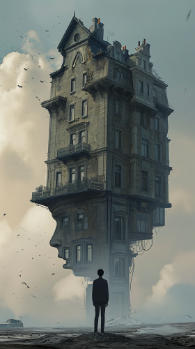 Abstract oil painting. Futuristic and dystopian. A Blue protective energy field surrounding a grey Mecha battle robot. White background. --ar 2:3 --v 5.2