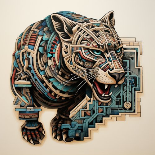 kukulcan interlacing a jaguar, mayan calendar, mixed Mayan and Toltek style, simplistic, black strokes