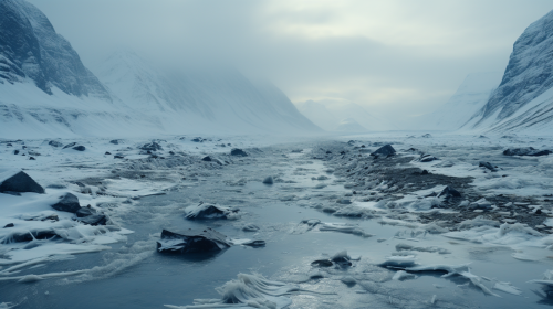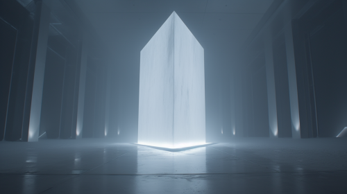alien landscape, (like 2001 SPACE ODYSSEY). cold, otherworldly ghostly ambiance, cinematic, hyperrealistic, UHD, 4K, --ar 16:9 --chaos 50 --s 750