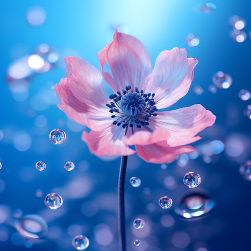 beautiful anemone, realistic photo, zoom, blurred blue background