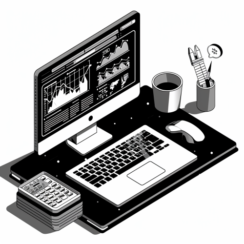 black and white vector image, infographic style image of a computer performing a smart analysis over a customer account, no shadows, no background, no boarders --v 6.0