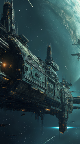 4k hi res image of a brutalist space station in the deep space, glitch effect --ar 9:16 --v 6.0