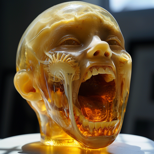 perfect replica of a child's head made in jelly, her mouth is huge and gaping, inside are four rows of teeth, by Stefanie Schneider --v 6.0