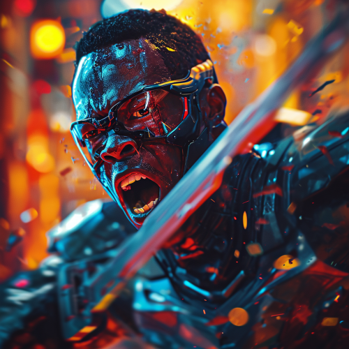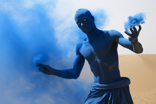 The deep azure blue smoke surrounded the ancient blue skinned African jinn and poured from his hands as he stirred the sands of the desert into a raging storm late into the desert night --ar 3:2 --s 50